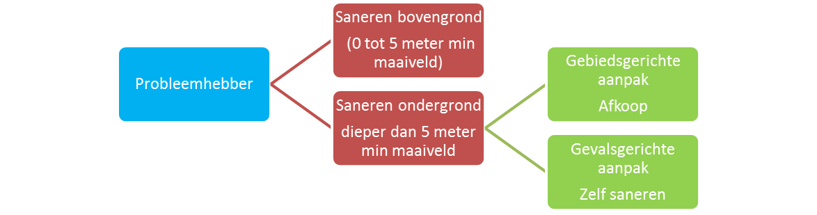 - Gevalsgericht: De probleemhebber zorgt er zelf voor dat de sanering wordt uitgevoerd volgens de Wbb en met goedkeuring van het bevoegd gezag.