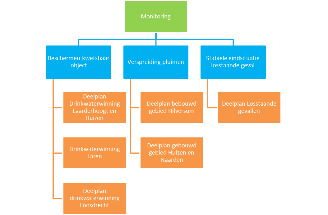 - Het volgen van de verspreiding van de ondergrondse verontreinigingen (zogenoemde pluimen) binnen de verschillende deelgebieden in het Gooi.